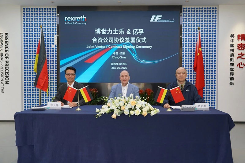 博世力士乐携手西安亿孚计划成立合资公司,共拓全球非道路机械市场1月26日,博世力士乐与西安亿孚智能装备有限责任公司(以下简称“西安亿孚”)在西安正式签署合资协议,双方将共同致力于为全球市场研发与销售非道路机械电动缸(EMA),由博世力士乐主导技术方向。博世力士乐于1978年进入中国市场,是全球领先的传动与控制技术供应商之一。西安亿孚成立于2001年,是西安华欧精密机械有限责任公司的全资子公司,长期专注于硬车削技术并生产滚珠丝杠产品。