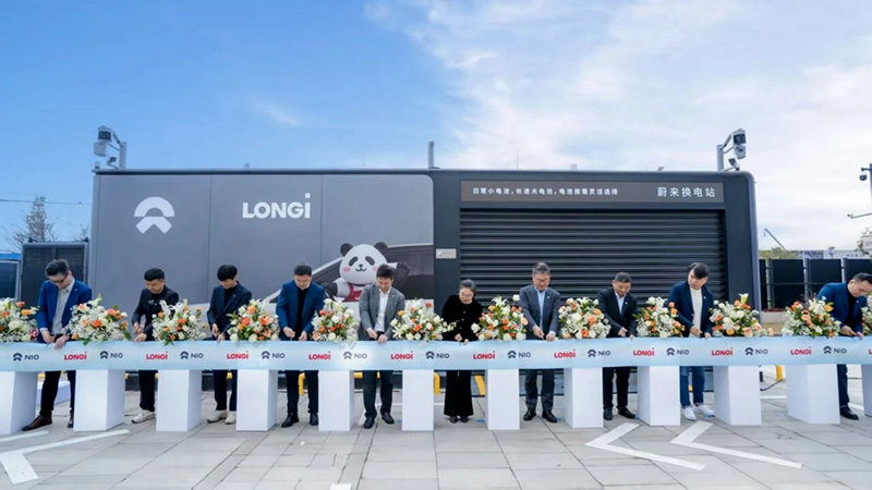 “光伏+交通”新范本,隆基与蔚来携手打造光储充换一体化项目2月2日,隆基绿能与高端智能电动汽车品牌蔚来携手打造的“光储充换一体化项目——蔚来换电站 | 嘉兴隆基全球分布式研发中心”在浙江嘉兴正式落成。隆基分布式事业群副总裁、产品管理中心总裁吕远,蔚来能源总裁曲玉共同出席仪式并致辞,并由蔚来智能电动行政旗舰ET9完成了该光储充换电站的首换仪式,标志着这一集“光伏车棚、光伏围墙、光伏声屏障、蔚来光伏换电站”于一体的创新能源解决方案投入运营。