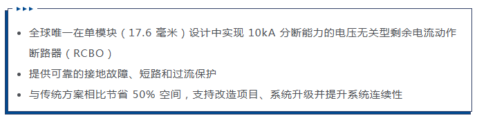 DS301C M在单模块 17.6 mm 宽度(微型断路器 MCB 标准宽度)内实现了10 kA的短路分断能力,提供了以往仅在更宽的两模块、三模块方案中才能实现的保护等级。